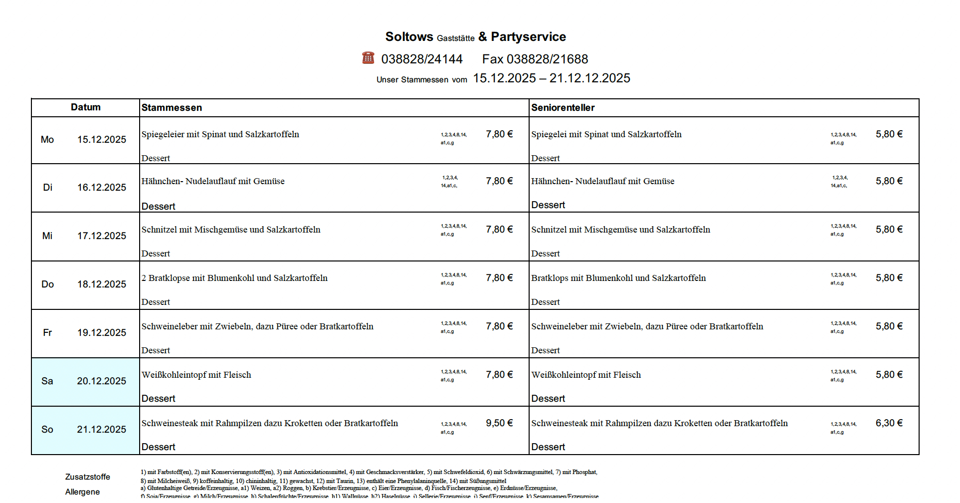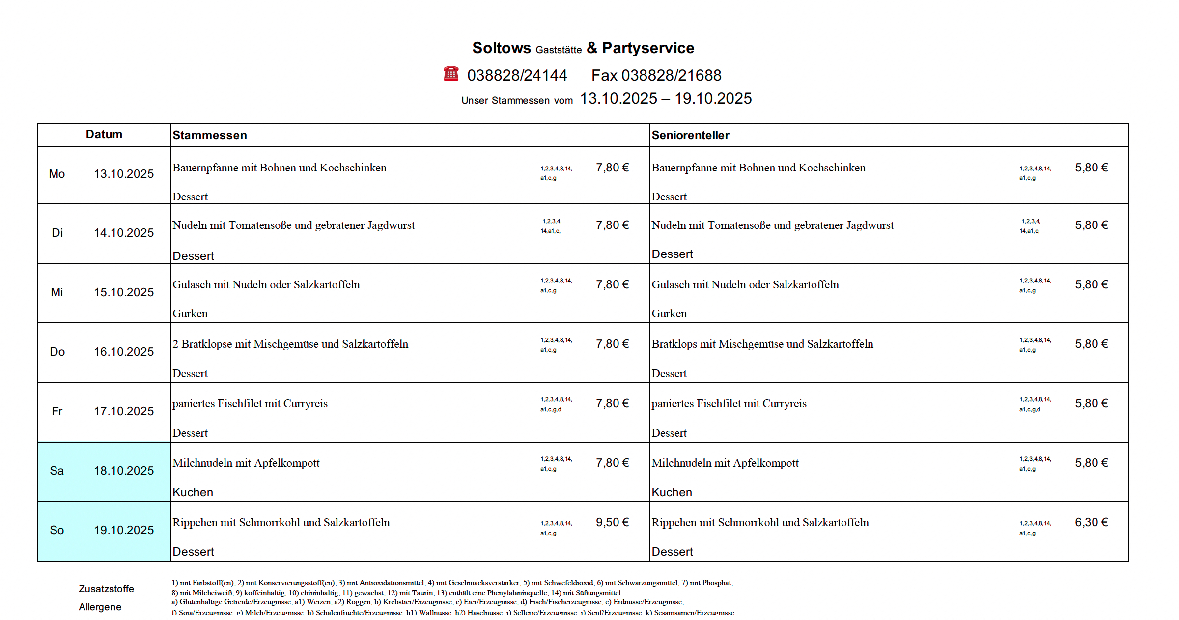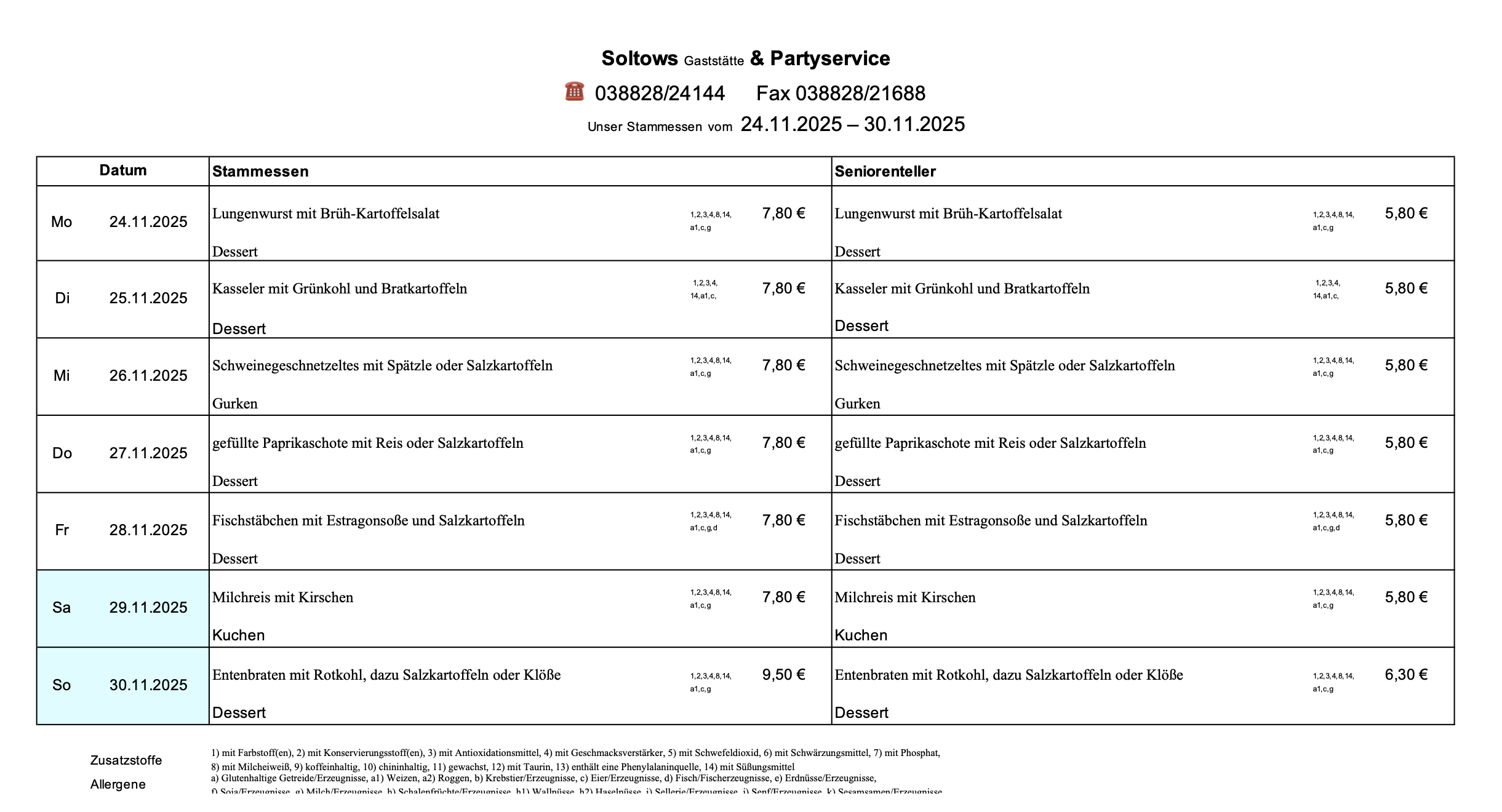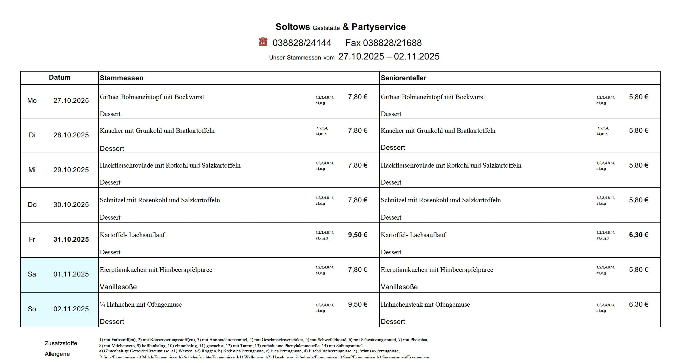 aktueller Speiseplan