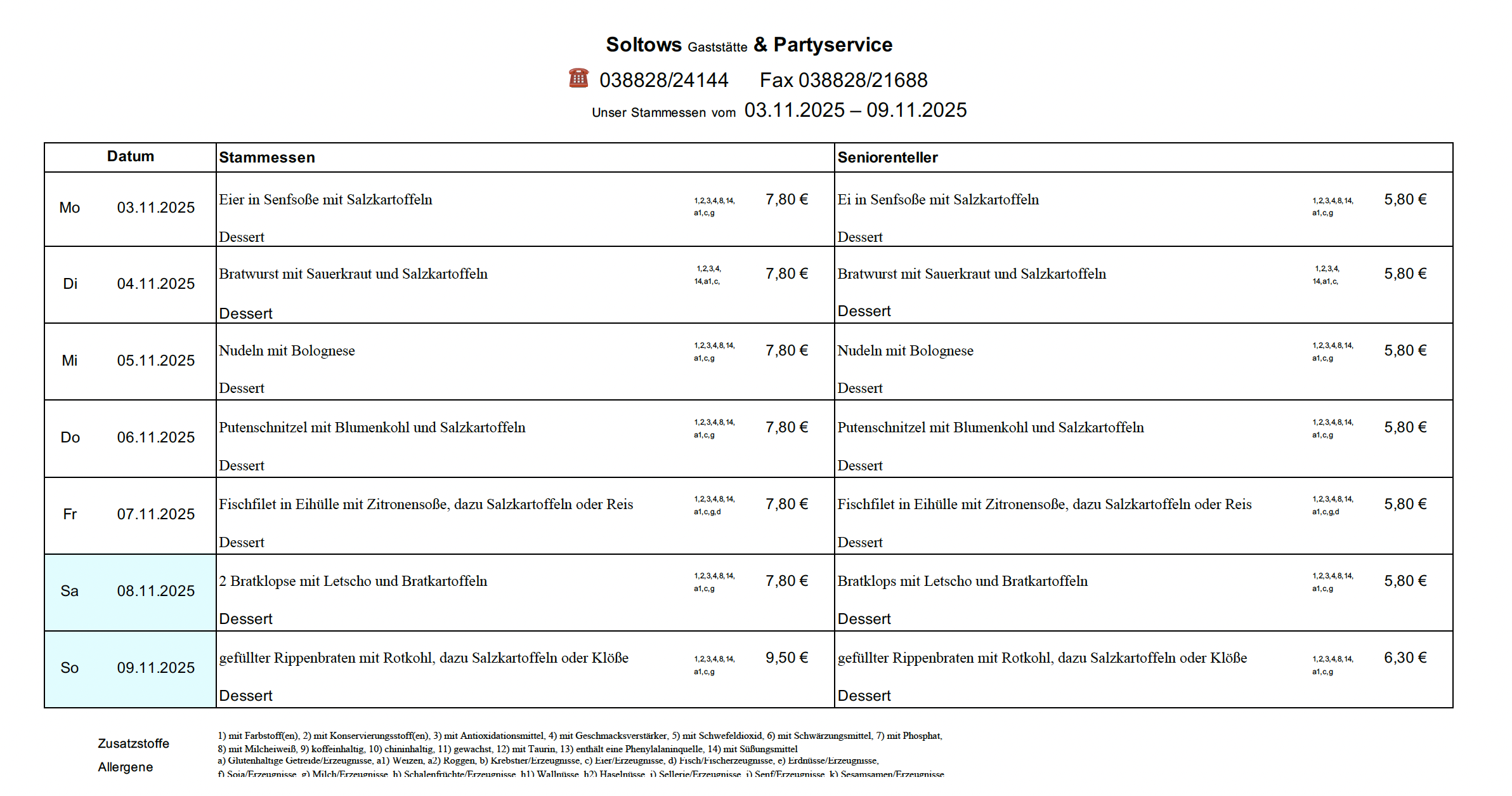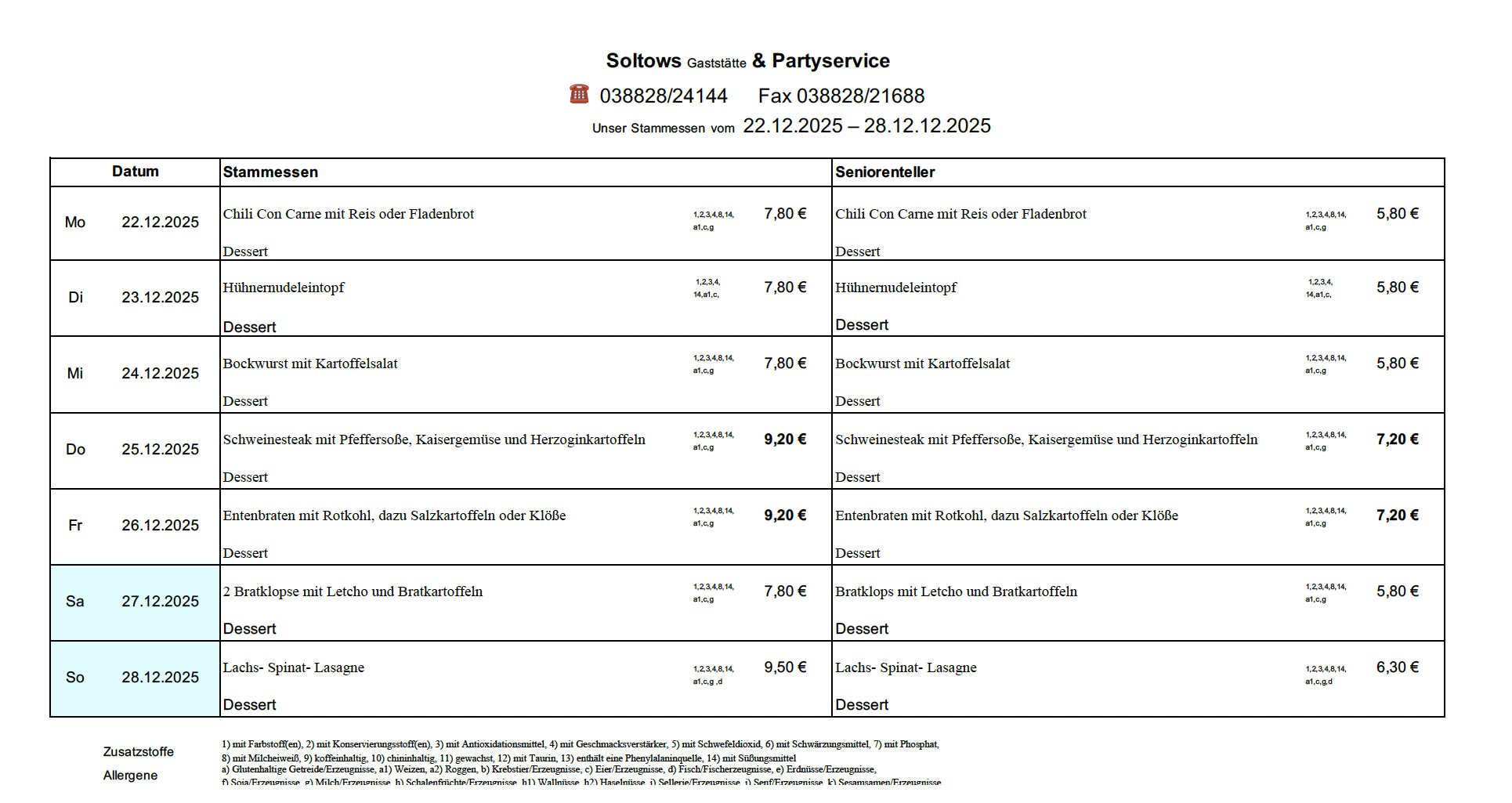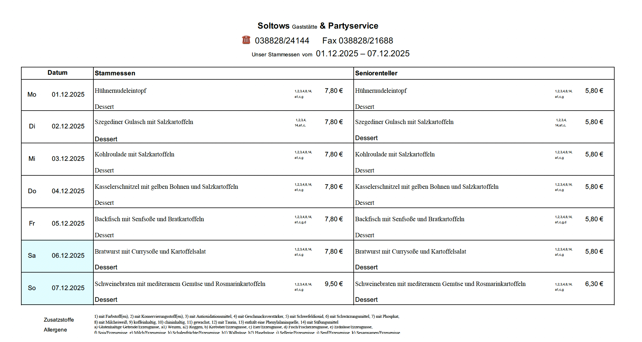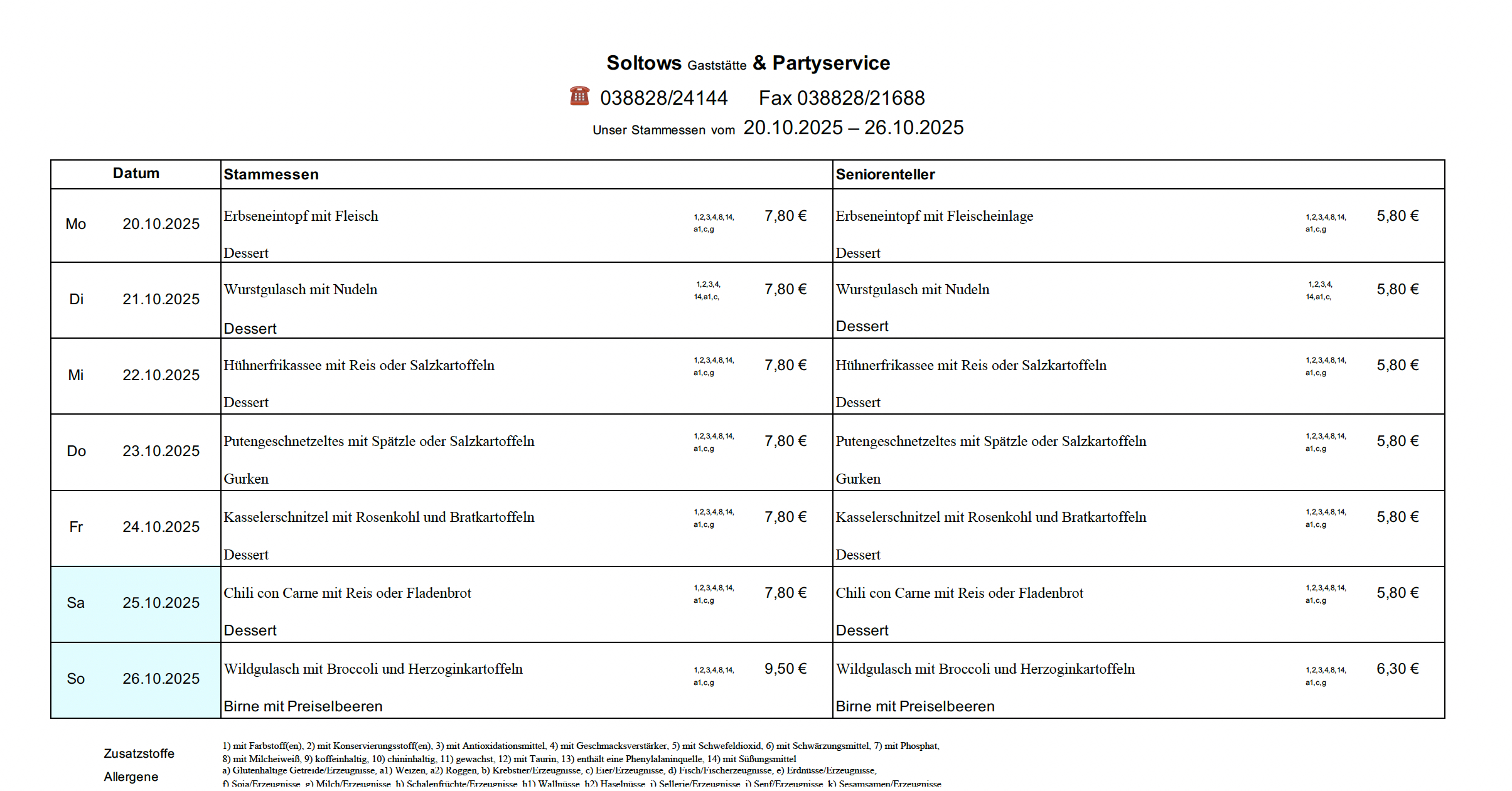 aktueller Speiseplan